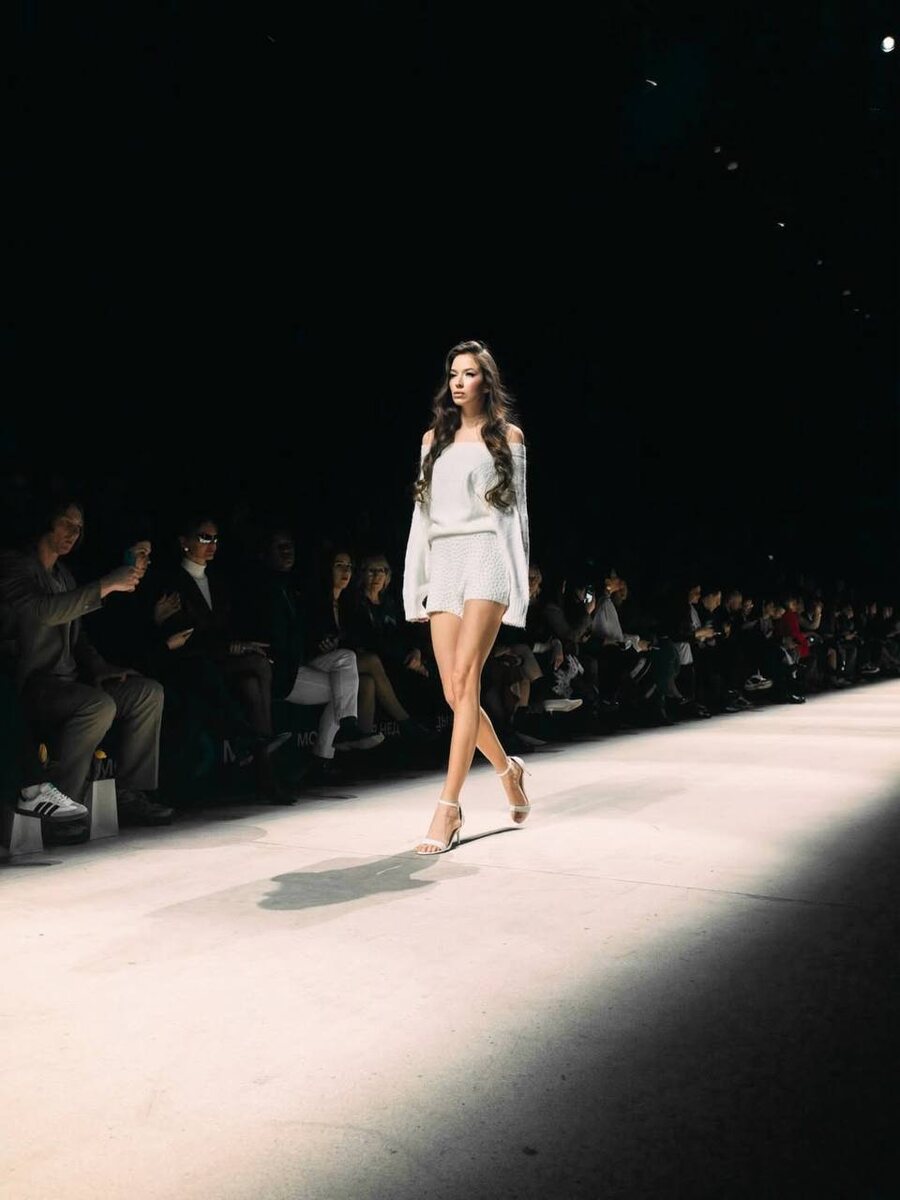 🤍 В этом белом ансамбле трикотажный свитер со спущенными плечами в паре с трикотажными шортами создают уютный, но в то же время женственный образ. Полужемчуг мерцает на мягкой ткани, добавляя особый шарм. Дополненный минималистичными белыми туфлями на каблуке, этот образ идеально подходит для современной жизни.