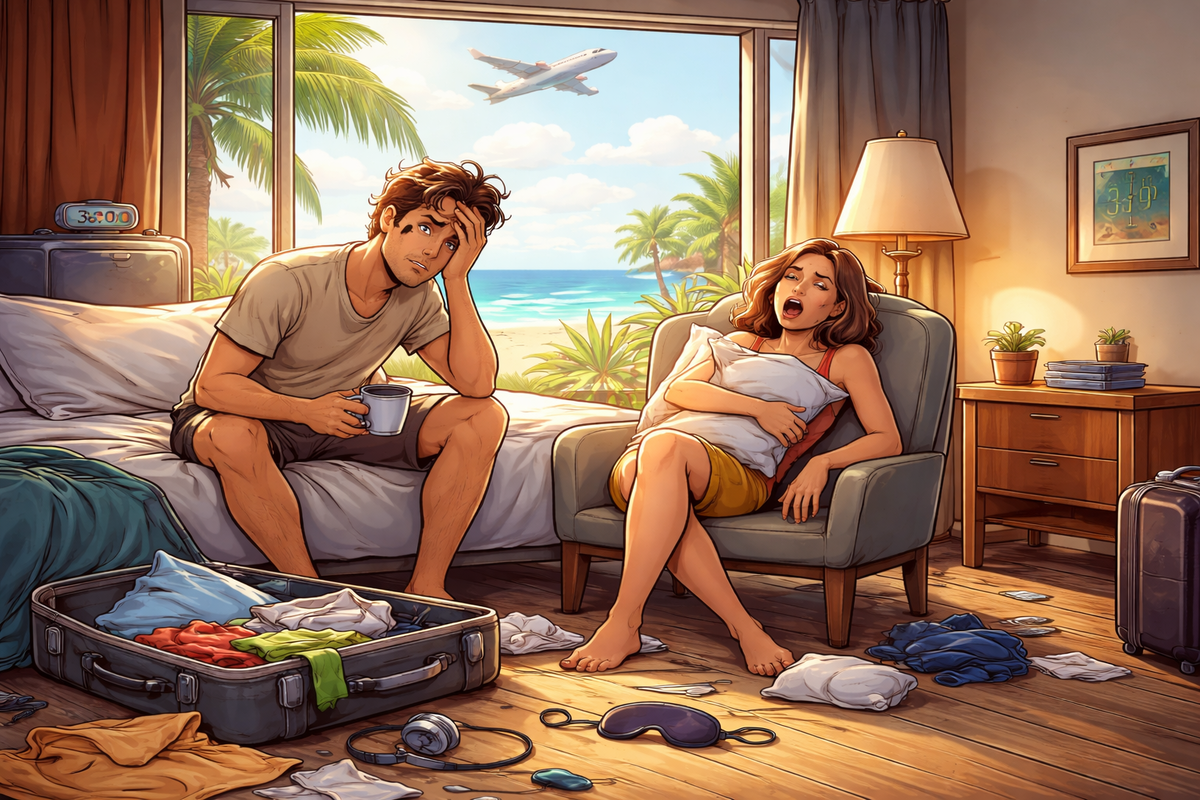 👉 ощущение, что мозг вообще не включается Это он - синдром смены часовых поясов. И если его игнорировать, он спокойно “съедает” первые дни отпуска. Разбираемся, как этого избежать 👇 Синдром смены часовых поясов - это не “усталость от перелёта” - это сбой внутренних часов Ваш организм живёт по одному времени, а вы резко переносите его в другое. В итоге: — сон не вовремя