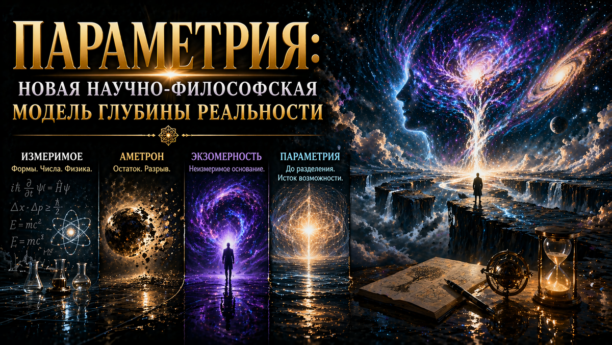 Если сказать совсем просто, параметрия — это то, благодаря чему вообще возможны и мир, и его описание, и его предел, и его остаток. Экзомерность — это уровень вне измерения, который даёт о себе знать через аметрон. Аметрон — это тот след, по которому мы догадываемся, что измеримое не всё. И измеримый мир — это та часть реальности, с которой умеет работать наука. Эта конструкция, конечно, ещё не теория в строгом смысле науки. Но это уже не просто метафора. Это попытка собрать в одну систему всё, к чему наука и философия шли раздельно.