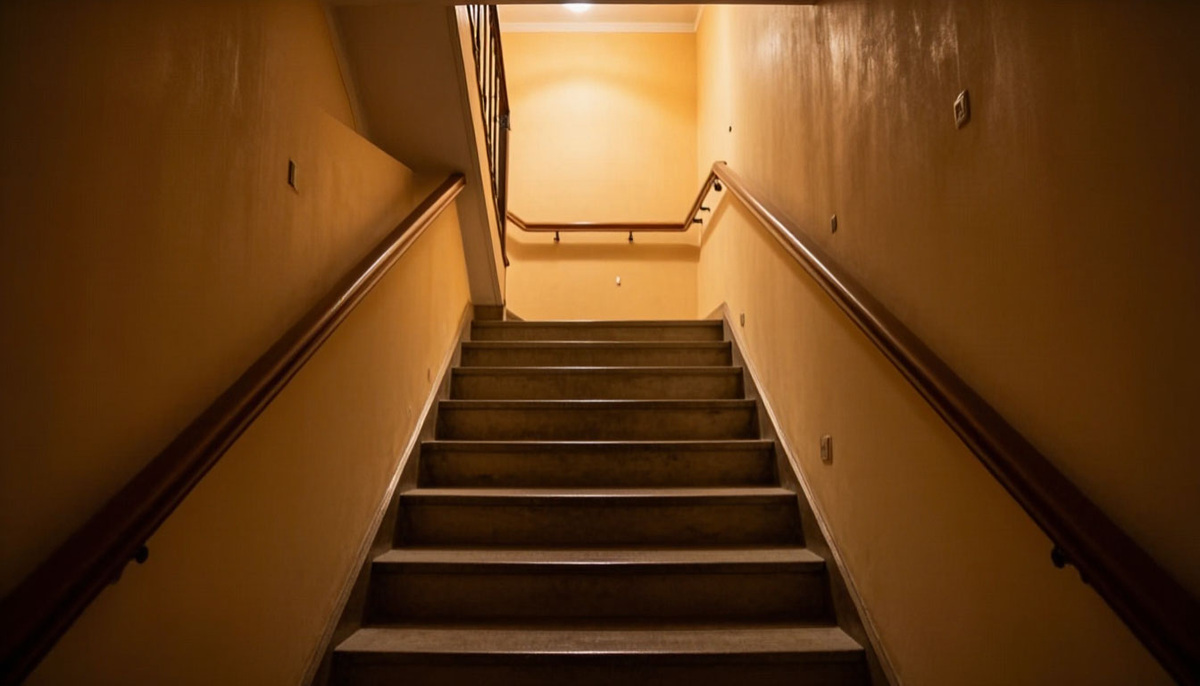 Смотрим на число 3-5 сек. и идем. Цвет стены, например, темно-зелёный или любой другой. Рисуем числа кисточкой с краской. Цвет стен меняем 3-4 раза по цвету и освещению, например, после 5, 10, 15 этажа. (Постоянное смена цветов на каждом новом этаже утомляет и