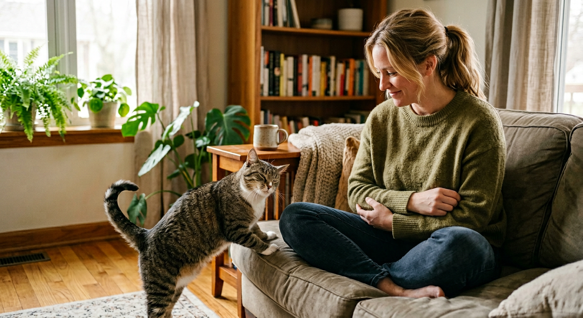 Когда кошка подходит сама, она чувствует, что управляет контактом.