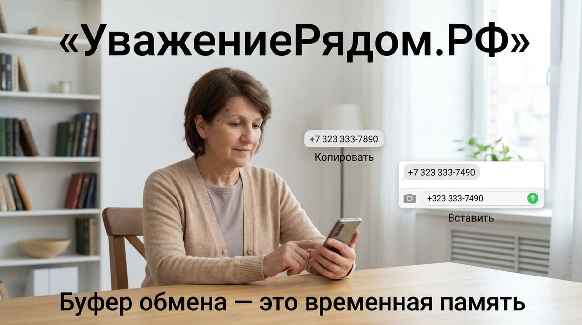 а потом можете достать и вставить туда, куда нужно. Как это работает в жизни 🔴 выделили текст → «Копировать» 🔴 номер, ссылка или слово попали в буфер обмена 🔴 нажали «Вставить» — и они появились в новом месте Буфер обмена ничего не хранит навсегда.Он помнит последнее скопированное, а когда вы копируете новое — старое исчезает. Важно знать 🔴 буфер обмена не опасен 🔴 но иногда туда могут попасть пароли или коды 🔴 поэтому не стоит копировать секретные данные без необходимости Вывод 👍 Буфер обмена — это удобный помощник, который экономит время и избавляет от переписывания вручную.