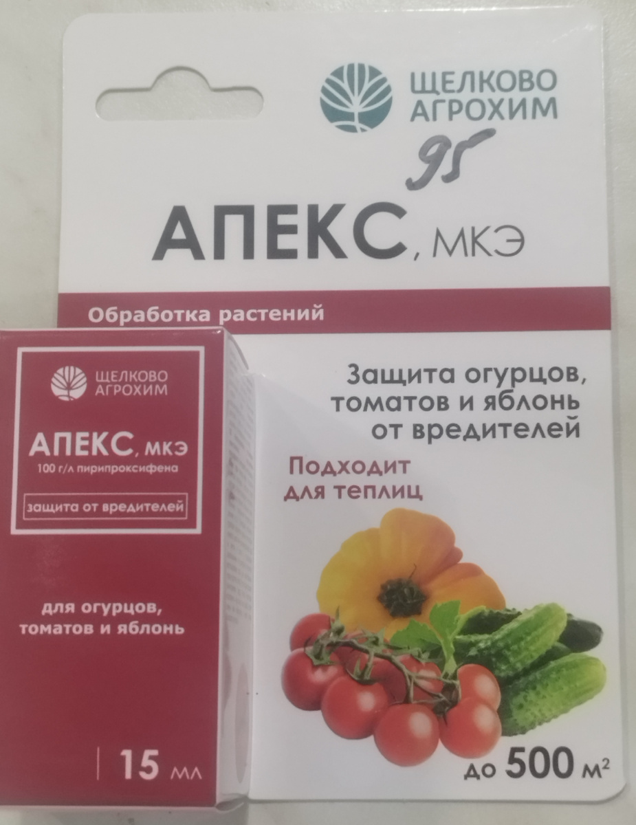 Апекс малотоксичен для полезных насекомых, в том числе пчел и энтомофагов, экономичен в применении и является идеальным препаратом в борьбе с такими вредителями, как капустные моль и совка, белянка, калифорнийская щитовка, яблонная плодожорка.