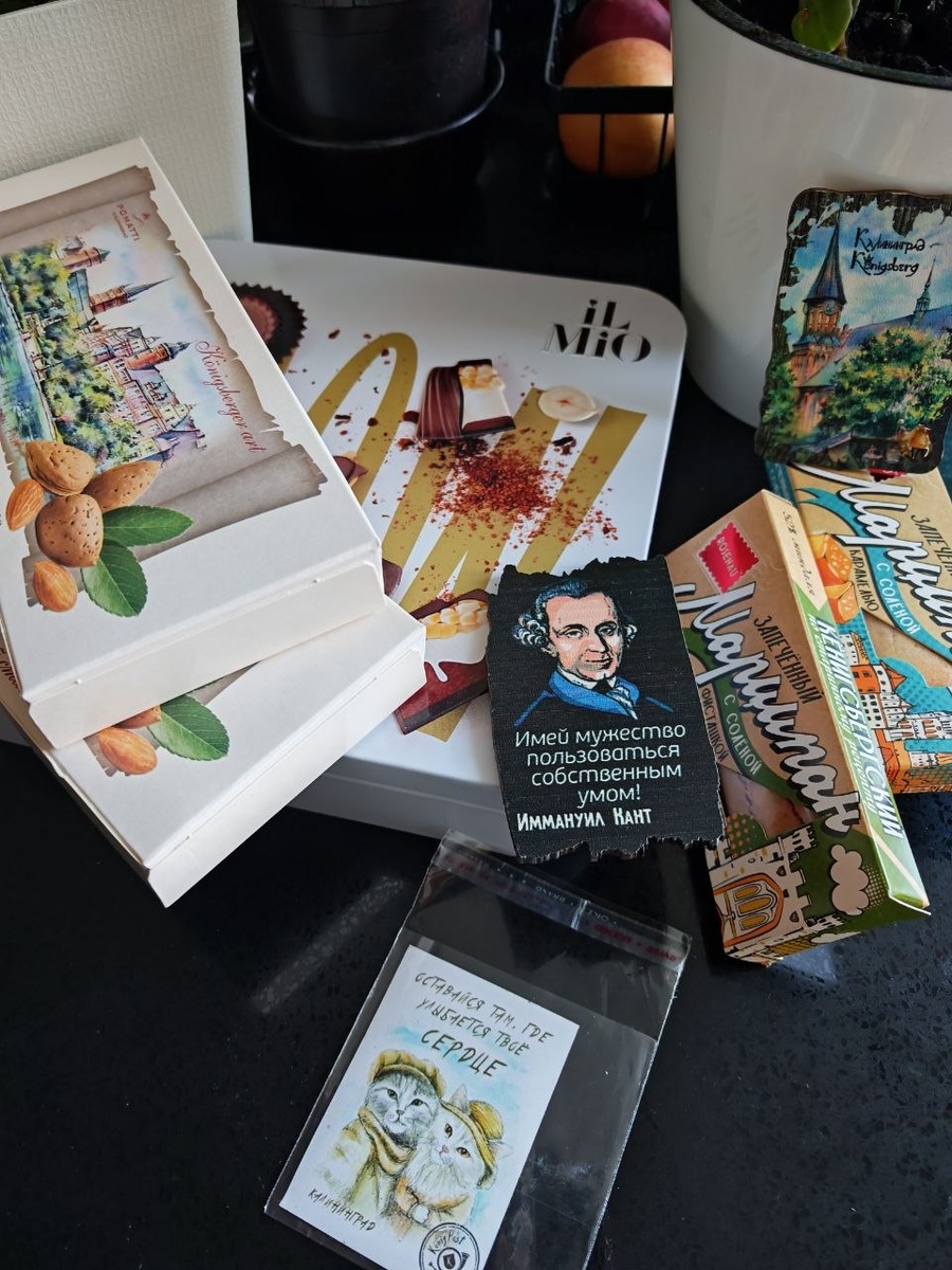 Время бежит так быстро – вот уже 2 недели прошло с тех пор, как я была на педагогическом фестивале «Янтарная симфония». А я даже не похвалилась своими сувенирами из Калининграда! 😄 Исправляюсь! И так, привезла магнитики с цитатами Канта, покупала возле Кафедрального собора Кёнигсберга. Ну и, конечно, как без знаменитого марципана? Правильно — никак! Поэтому брала и на пробу, и в подарок. Кстати, больше всего мне понравился запечённый марципан с солёной фисташкой. А по рекомендации нашего гида приобрела натуральную янтарную косметику Amber-Cosmetic. И ещё по совету того же гида решила привезти «Шакотис» — национальный литовский торт, который обычно готовят на свадьбы. По вкусу он напоминает венские вафли, только более плотные. Честно говоря, меня он не сильно впечатлил... Я всё-таки больше люблю «Медовик» или «Наполеон». А вы что обычно привозите из поездок? Есть сувениры, которые стали вашей традицией? ✈️