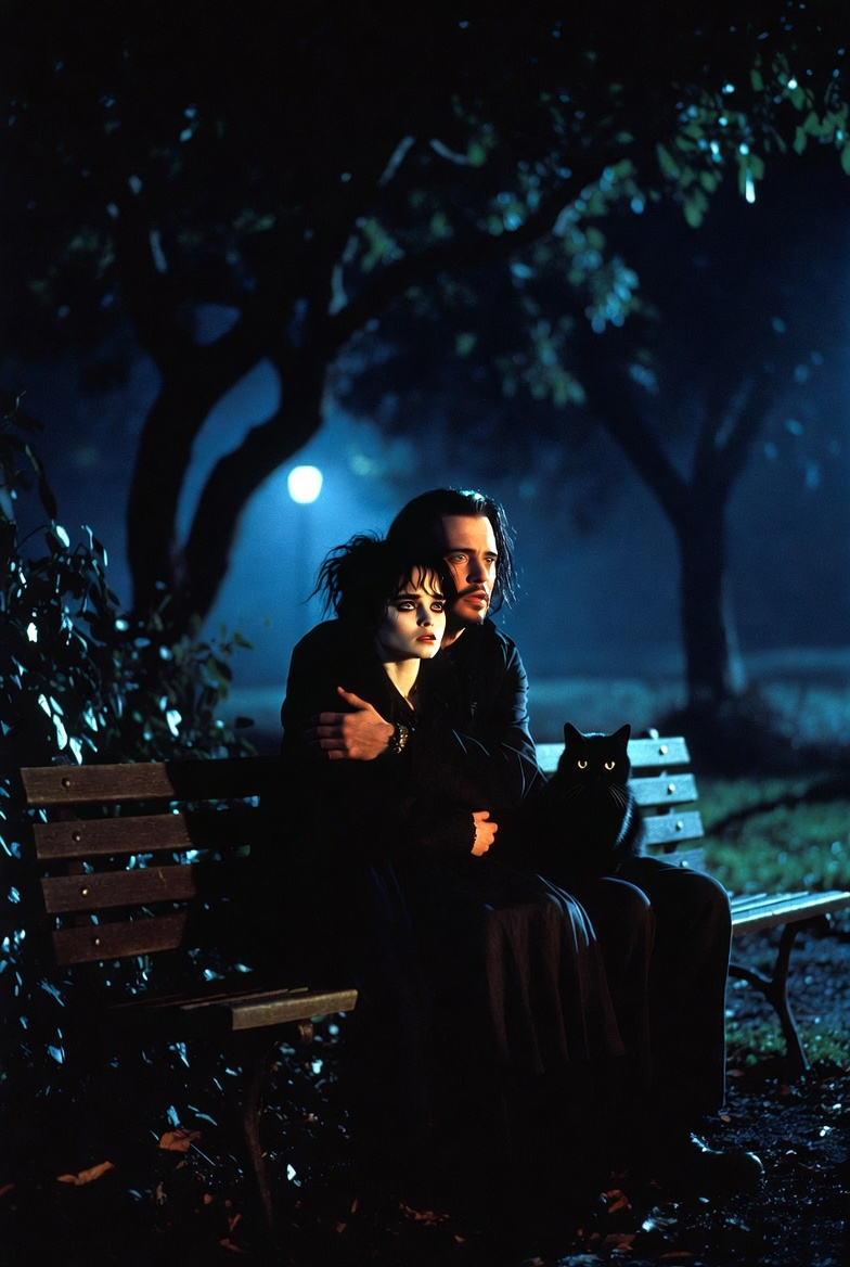 На скамейке сидели мужчина и кот.