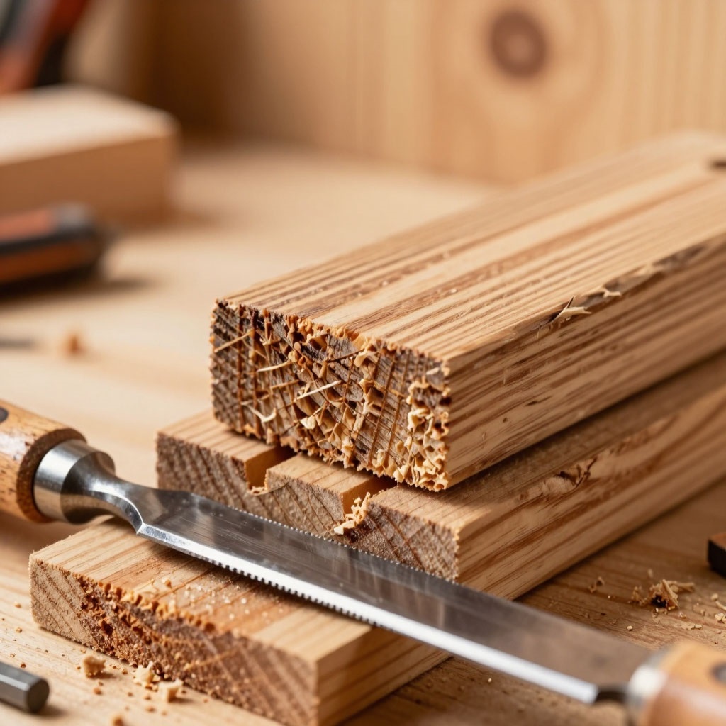 - Менее подходят: берёза, бук, клён — из‑за слабовыраженной слоистости результат может разочаровать.