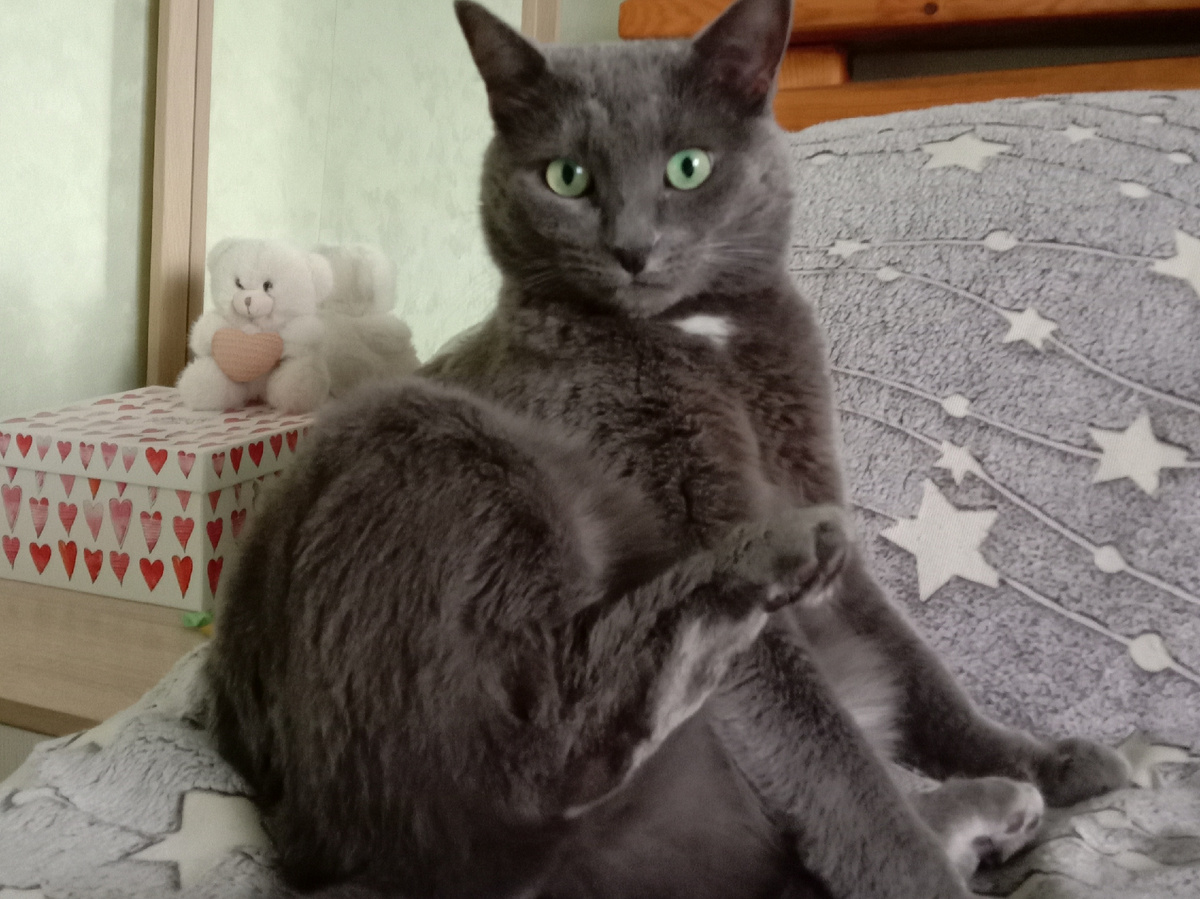 Вот вчера Няша умывалась и вдруг замерла с поднятой задней лапой, смотря в одну точку.