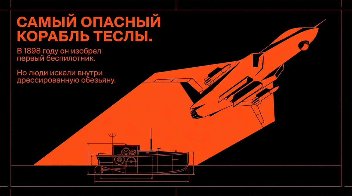 Когда Никола Тесла спустил свою лодку на воду в Мэдисон-сквер-гарден, зрители искали внутри дрессированную обезьяну. Никто не верил, что машиной можно управлять по радио, а адмиралы и вовсе назвали технологию «дьявольской магией» и закрыли проект. В темном зале бассейн, лодка длиной чуть больше метра, на трех антеннах горят сигнальные лампы. Тесла стоит с коробкой в руках — пульт управления. Он поворачивает рычаги, а лодка выполняет команду. Люди смотрят друг на друга в недоумении. Это невозможно. Это магия.