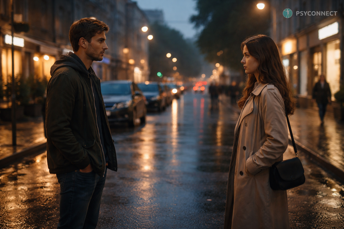 О двух людях, которые раз за разом расходятся, пытаются жить дальше, но каждый раз оказываются в одной точке - там, где прошлое не отпускает. Если двум людям действительно суждено быть вместе, с ними всегда происходит одна странная, почти незаметная вещь. Прямо сейчас где-то - может быть, даже в соседнем доме - кто-то смотрит на экран телефона и не отправляет сообщение. Пальцы зависли над клавиатурой, слова уже сложились, но что-то останавливает. Гордость. Страх. Память о том, чем всё закончилось в прошлый раз. И он не знает, что в этот же самый момент другой человек делает ровно то же самое. Это не совпадение. Это будто какая-то упрямая закономерность, которую никто не признаёт вслух. Большинство людей думают, что судьба - это когда всё легко. Когда совпадает время, когда не приходится сомневаться, когда любовь течёт ровно и спокойно, как в кино. Неправда. Так бывает только в выдуманных историях. Настоящая судьба выглядит неаккуратно. Она похожа на уход. На слова, которые не сказали.
