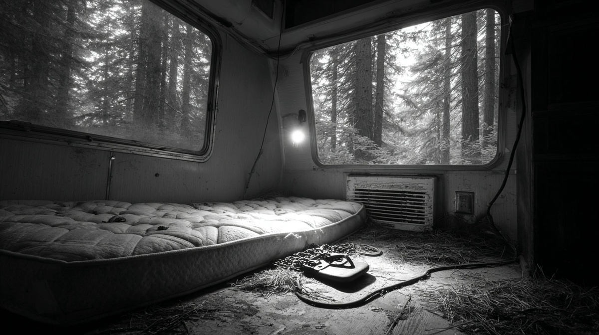 ❗ ПРЕДУПРЕЖДЕНИЕ: Эта статья содержит подробные описания жестокости. Основано на реальных событиях. Они ехали около часа. Уайлдер молчал, иногда поглядывая на Лизу с непонятной улыбкой. Она сжалась на сиденье, поджав колени к груди. Внутри ещё теплилась надежда: может, он правда хороший? Может, он отвезёт её в приют? Фургон свернул на грунтовую дорогу. Затем — ещё один поворот, в глубь леса. Лиза насторожилась, но спросить не решилась. Уайлдер остановил машину у старого трейлера, окружённого соснами. Изнутри не горел свет. «Мы приехали, — сказал он. — Выходи». Трейлер Внутри пахло сыростью и чем-то кислым. Уайлдер зажёг керосиновую лампу — электричества не было. И тогда Лиза увидела. На полу, приваренные к металлическому каркасу кровати, висели цепи. Наручники. В углу — грязный матрас с бурыми пятнами. Она попятилась к двери. Но Уайлдер уже стоял на выходе. В руке у него блеснул нож. «Ты никуда не идёшь, — сказал он уже другим голосом. Без улыбки. Без тепла. — Ты теперь моя». Лиза закр