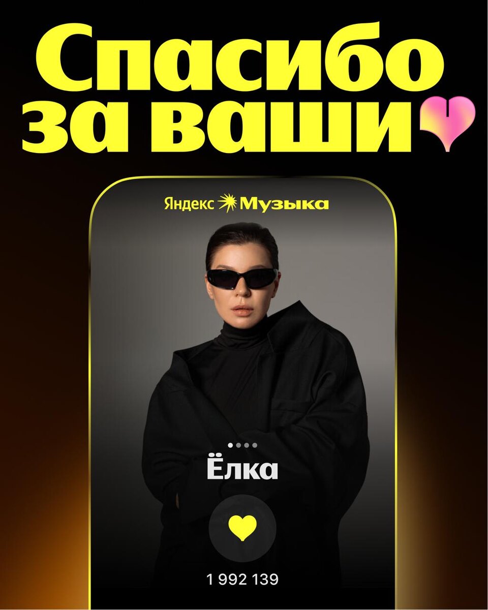 У Ёлки рекорд по лайкам в Яндекс Музыке: почти 2 млн сердец 💛