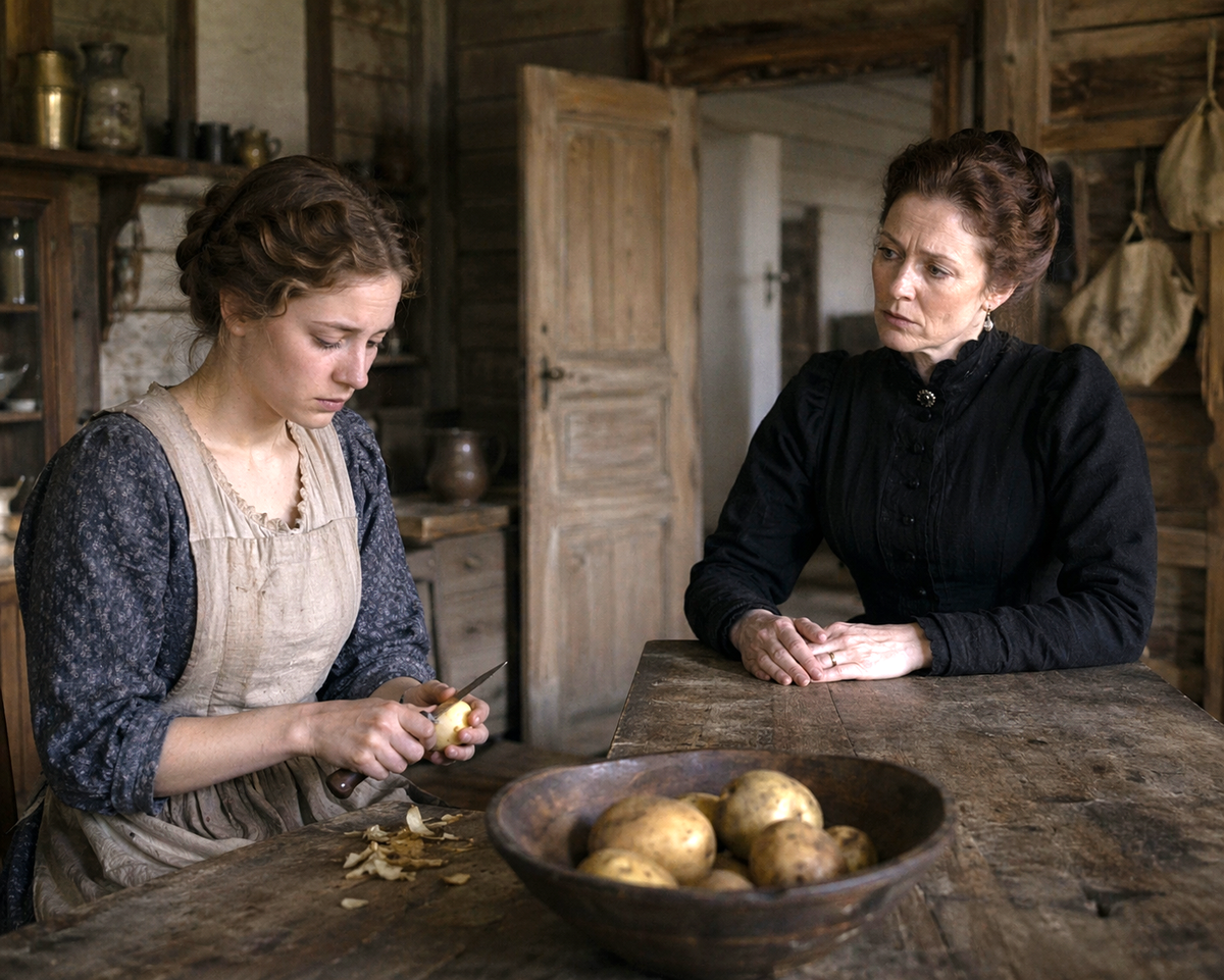 Анна смотрела на него долго. Потом кивнула, подошла к печи, поставила чугунок. Цепи загремели, и Пахом поморщился.
