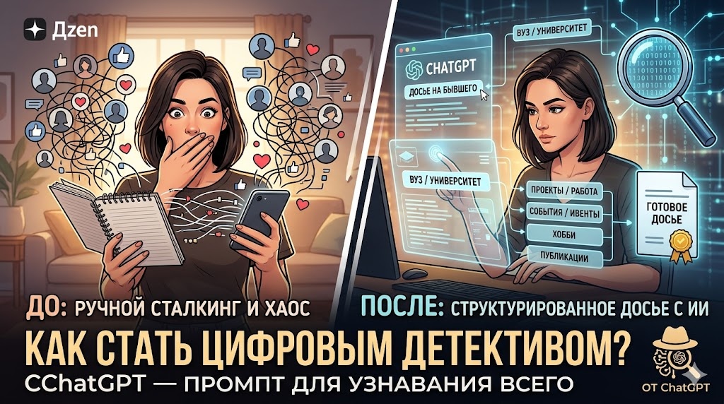 «Я реально в шоке, девочки...» Или как я случайно стала цифровым детективом Признавайтесь, кто из нас хоть раз не «сталкерил» бывших или новых знакомых в соцсетях? Мы переворачиваем горы подписок, ищем лайки и пытаемся по крупицам собрать общую картину жизни человека. Но, кажется, эпоха ручного поиска ушла в прошлое. На днях я наткнулась на фишку, от которой у меня буквально мурашки по коже. Оказывается, теперь не нужно быть майором ФСБ, чтобы узнать о человеке всё. Достаточно ChatGPT, пары вводных данных и одного «секретного» промпта. Как это работает на практике? Я решила провести следственный эксперимент. Объект — мой бывший (ну а кто же еще?). Ввела имя, фамилию, город и… замерла. Через минуту нейросеть выдала мне готовое досье. GPT не просто нашел его профиль, он структурировал всю информацию: где учился, в каких проектах светился, чем живет сейчас и даже на какие профессиональные тусовки и мероприятия ходит. Ощущение было такое, будто я открыла его личный ежедневник. Почему это