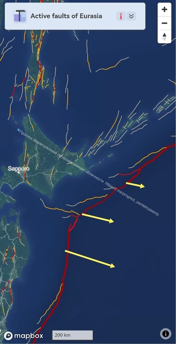 Восточная граница Охотской плиты в районе Хоккайдо и Южных Курил продолжает трассироваться на уровне М6.5