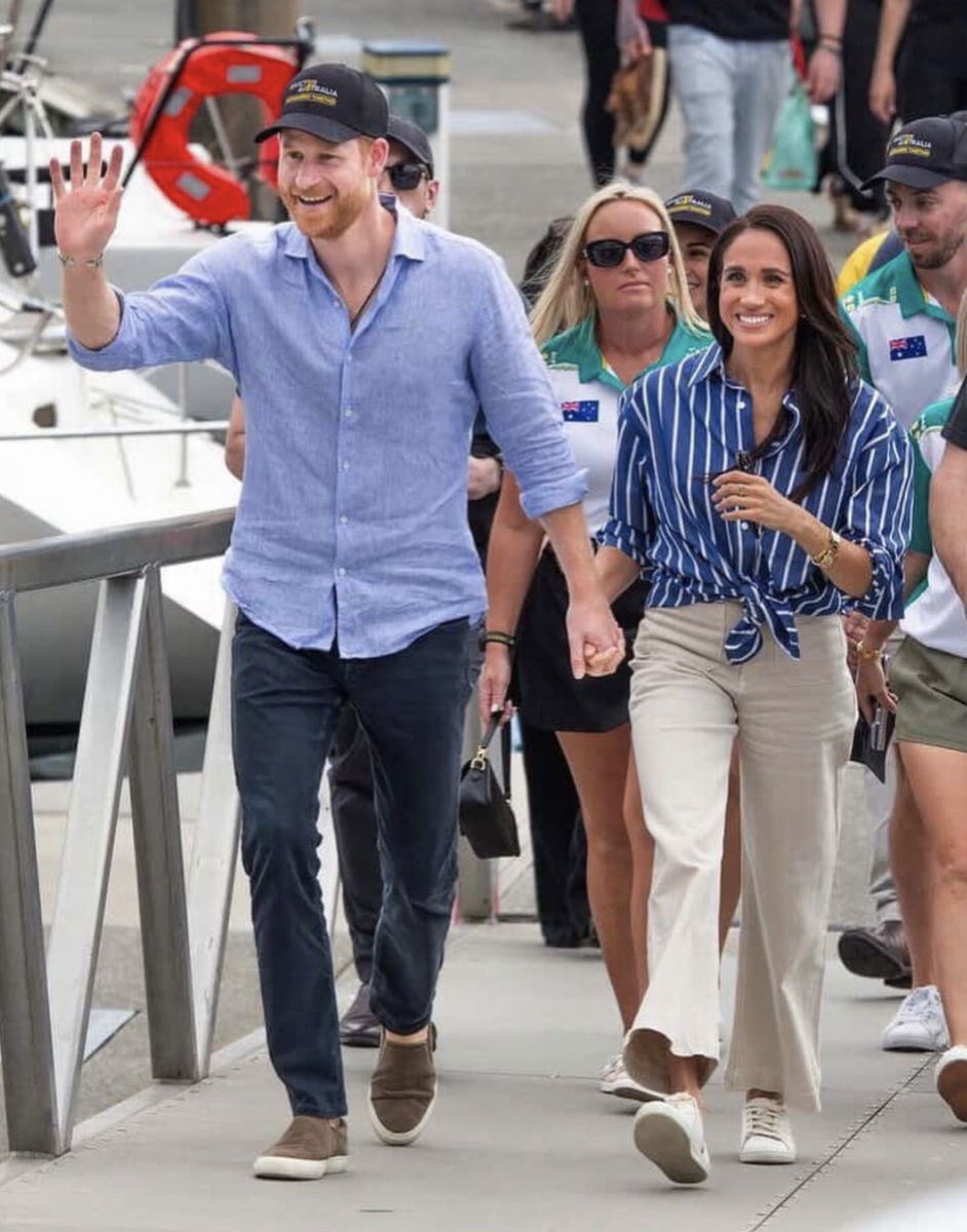 Королевишна не смогла устоять перед искушением брать деньги за рекламу одеяний от брендов, но одно упущение было особенно заметным. Герцогиня со своим принцем появилась на побережье в районе Бонди бич, где совсем недавно произошла резня и 15 евреев погибли. Меган не додумалась до ничего более нелепого, как выбрать полосатую рубаху.