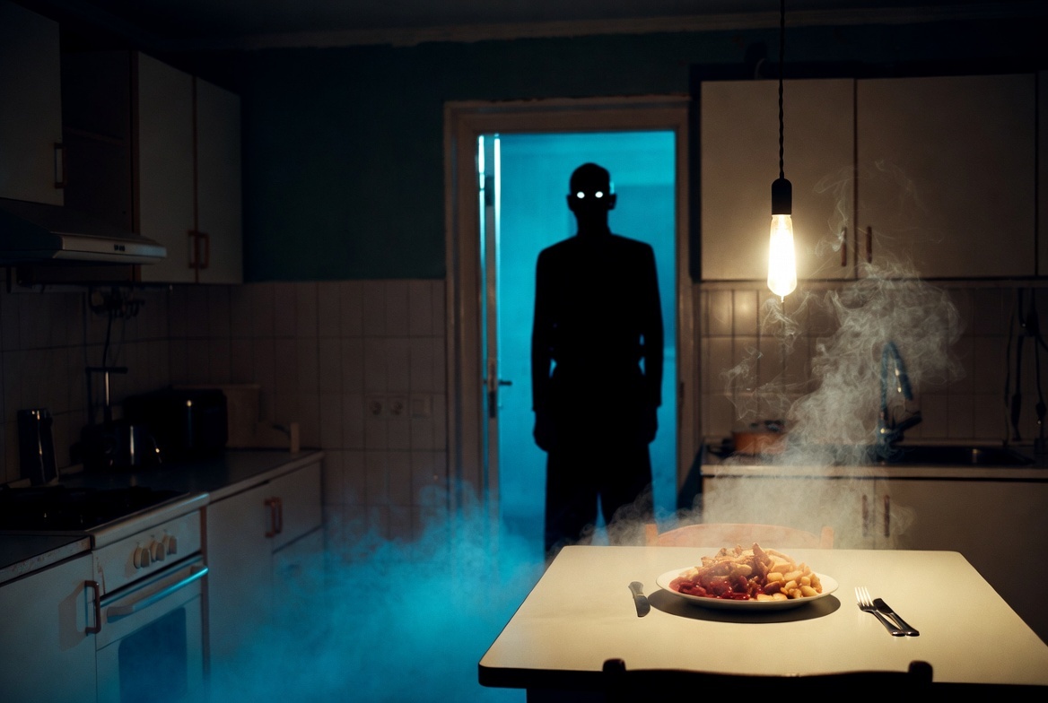 Я прошёл на кухню. На столе стояла тарелка. Горячая. Пар шёл. Рядом лежала вилка, нож, кусок чёрного хлеба. Всё аккуратно, как будто ждали именно меня.