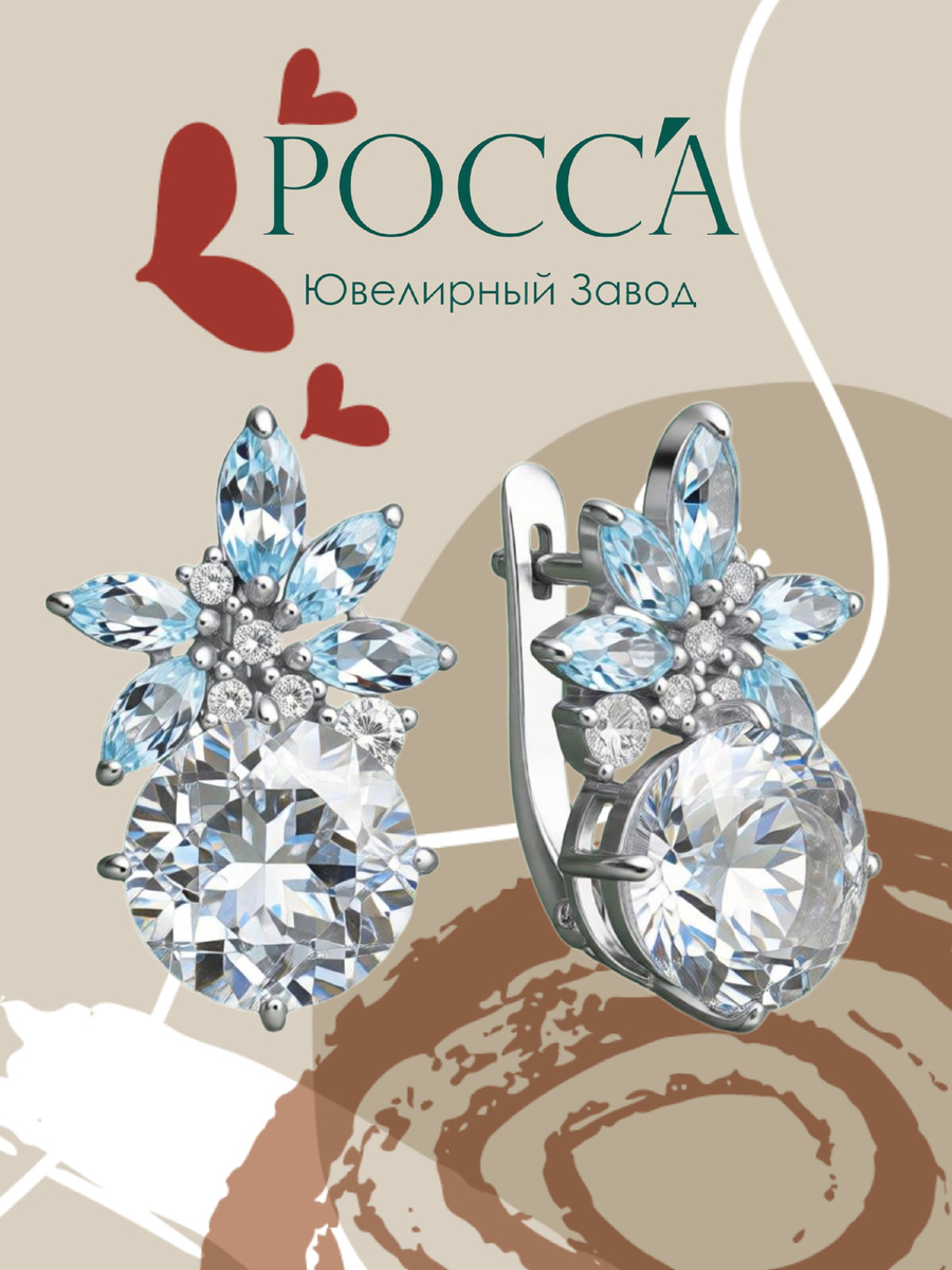 Одна модель — пять видов вставок, две огранки, игра света как в дорогом бриллианте. Ювелирный завод «РОСС’А» представляет серьги ручной работы, где главный герой — натуральный горный хрусталь весом 7,09 карата. А вокруг него разворачивается настоящая ювелирная постановка. Рассказываем, чем уникальны эти украшения и кому они созданы. Горный хрусталь — разновидность кварца, абсолютно прозрачный, без включений. Чистота вставки здесь заявлена как «1» — это высший балл для прозрачных камней. Диаметр центрального кристалла — 10 мм, вес — 7,09 карат. Огранка — предположительно круглая бриллиантовая, чтобы максимально раскрыть игру света. Почему горный хрусталь ценят ювелиры и покупатели? Вокруг центрального хрусталя выстроена сложная многослойная инкрустация. Здесь использованы сразу несколько типов вставок: ВставкаОгранкаКоличество / ВесТопаз натуральный (голубой «Лед»)Маркиз (удлинённая лодочка)8 шт., общий вес 1,3 карата (уточнено)ФианитыБриллиантовая (круглая)0,48 каратаМаркизиты (или та
