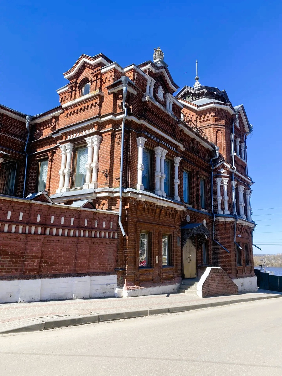 Это Дом купца Сиднева. Алексей Иванович Сиднев был почетным гражданином. Дом строился не для него, а для зятя, Ефима Ефимовича Алипова, на нижнем этаже располагался амбар для муки, отправлявшейся баржами по всей империи.