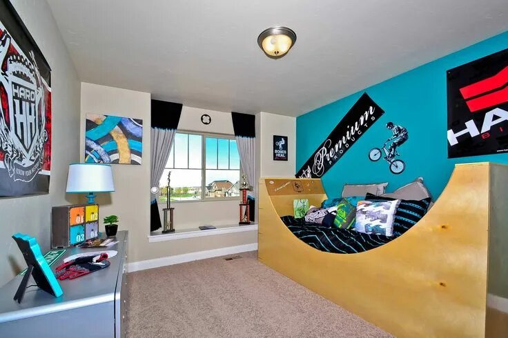 Один из современных молодежных интерьерных стилей связан с экстремальным велоспортом, он так и называется - ВМХ. Для тех, кто не в теме - это про летающие велосипеды. Дизайнеры с удовольствием берутся за такие нестандартные проекты. Мебель в виде памп-трека, тематические плакаты и граффити - все вокруг говорит об увлечении хозяина комнаты. Оптимально, если напольное покрытие будет имитировать асфальт или бетон. Таких вариантов сейчас в нашем ассортименте много, по разной цене и с разными техническими характеристиками. Поскольку молодые спортсмены-ВМХ активны не только на треке, но и дома проявляют весьма большую прыть, мы бы порекомендовали ламинат попрочнее, такой как Quick Step, коллекция Muse Ultra, Дымчатый Голубой Камень MUU5484. 33 класс, влагостойкость 72 часа, толщина 12 мм. Также в этой коллекции есть более светлый вариант: Темный Голубой Камень MUU5485 Намного дешевле обойдется ламинат от Egger, коллекция Pro Large Aqua 8-33, Бетон Чикаго светло-серый EPL166. Он не так интер