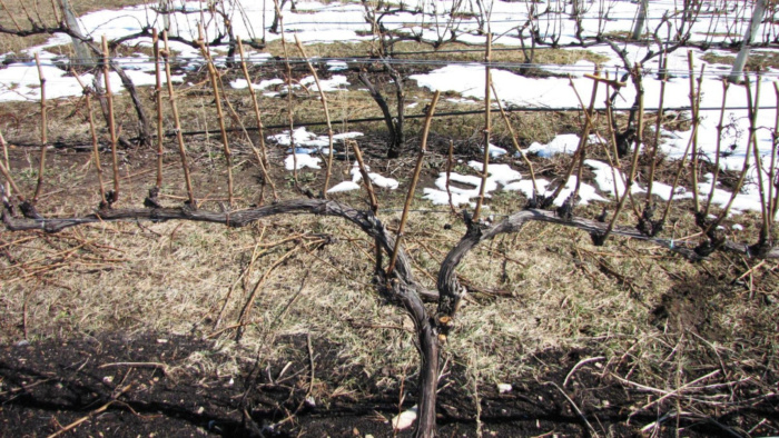 После полного освобождения лоз от укрытия самое время провести их детальный осмотр, чтобы оценить состояние после зимы и спланировать дальнейшую обрезку.