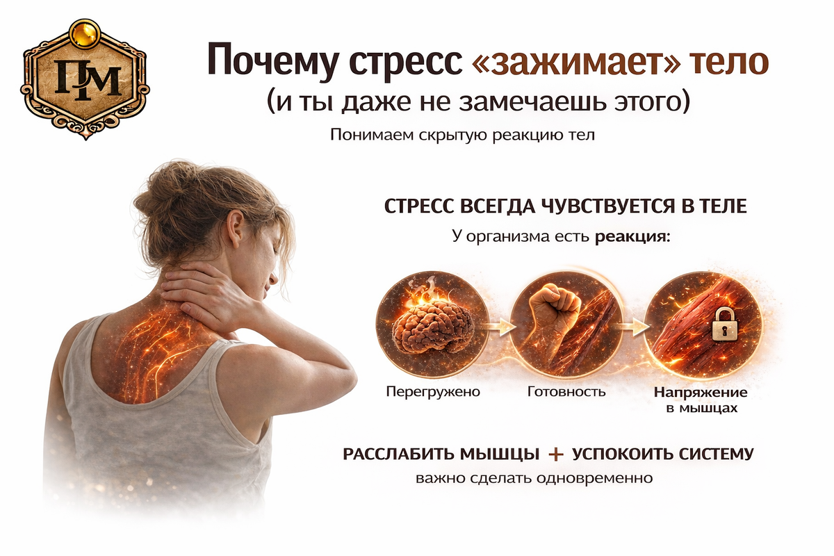 Почему тело остаётся напряжённым, даже когда ты не чувствуешь стресса? В этой статье разбираем: — как нервная система влияет на тонус мышц