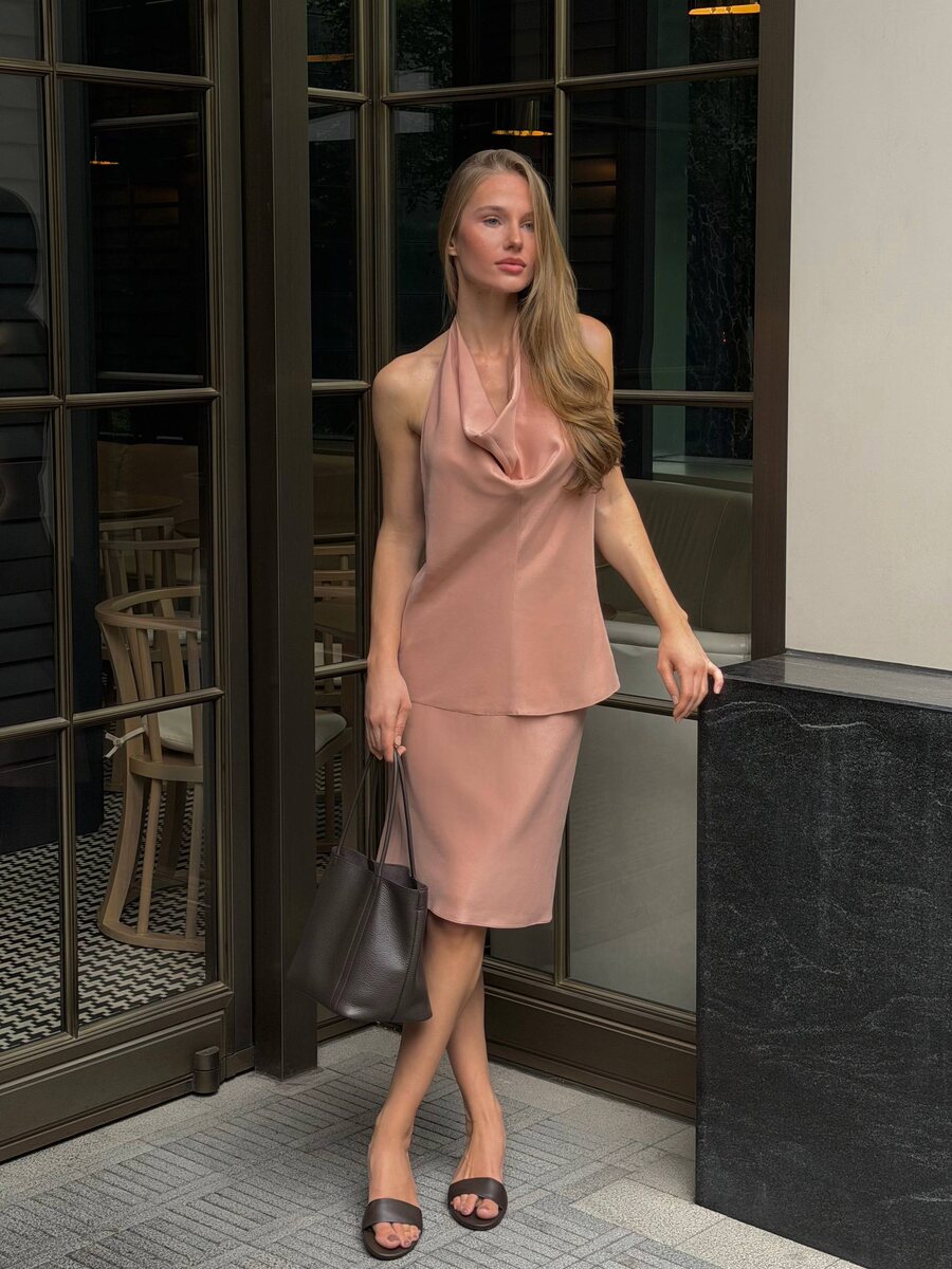 С помощью особой обработки ткань сделали мягче обычного шелка, она матовая и не скользит по коже. Топ подчеркивает фигуру за счет кроя и глубокого выреза на спине, а юбка создает женственный и хрупкий силуэт благодаря форме, напоминающей закрытый бутон. Примерить изделия в комплекте и по отдельности можно в магазинах 12 STOREEZ 🤍 12 STOREEZ