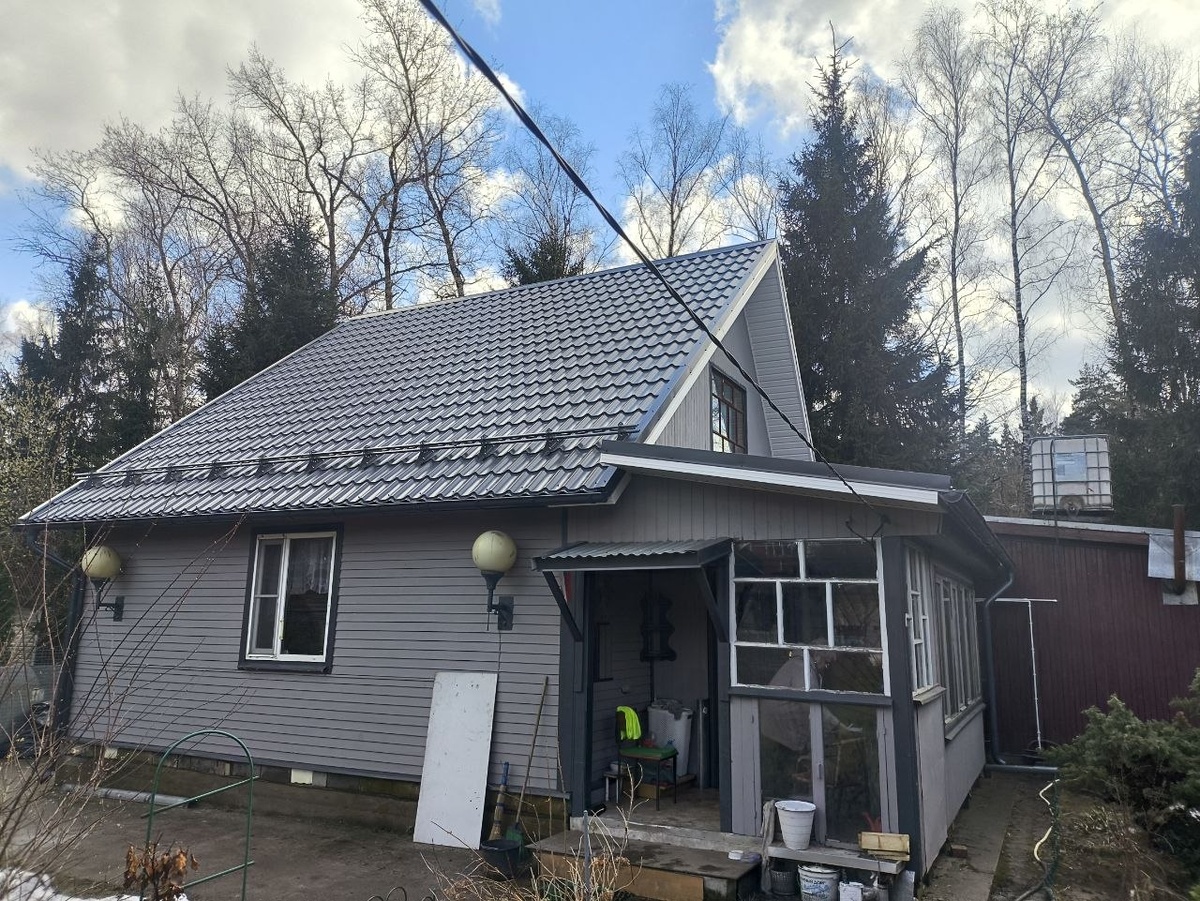 Заменили старое оцинкованное железо на стильную металлочерепицу Grand Line в графитовом цвете RAL 7024