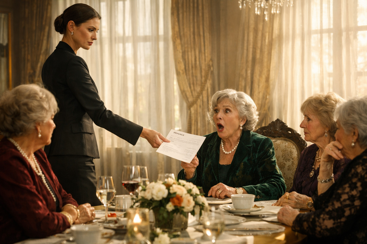 Подруги свекрови замерли, боясь пошевелиться. Тишина в зале стала мертвой. София сделала шаг вперед, и Антонина Петровна непроизвольно вжалась в спинку стула.