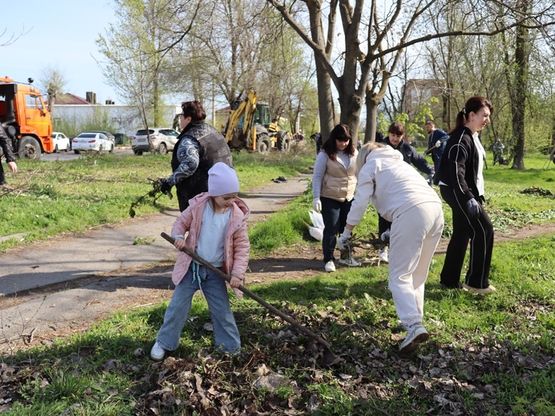 В Шахтах во время субботника привели в порядок территорию парка «Комсомольский» и улицу 50 лет ВЛКСМ