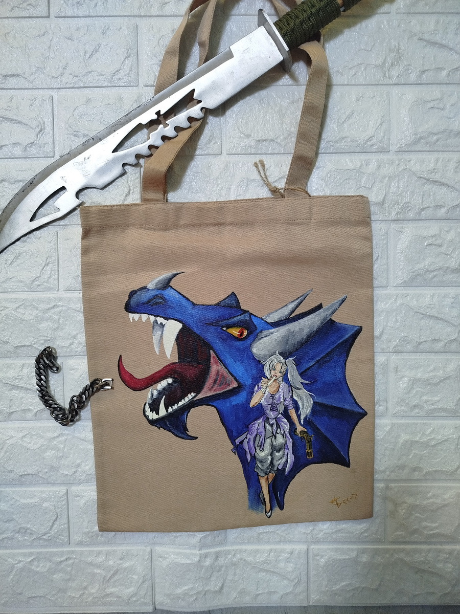 #росписьпоткани #кастомизация #ручнаяработа #handmade #шоппер #дракон #фэнтези #манхва #анимеарт #стиль #custom #идеиподарков #königkastom #Калининград