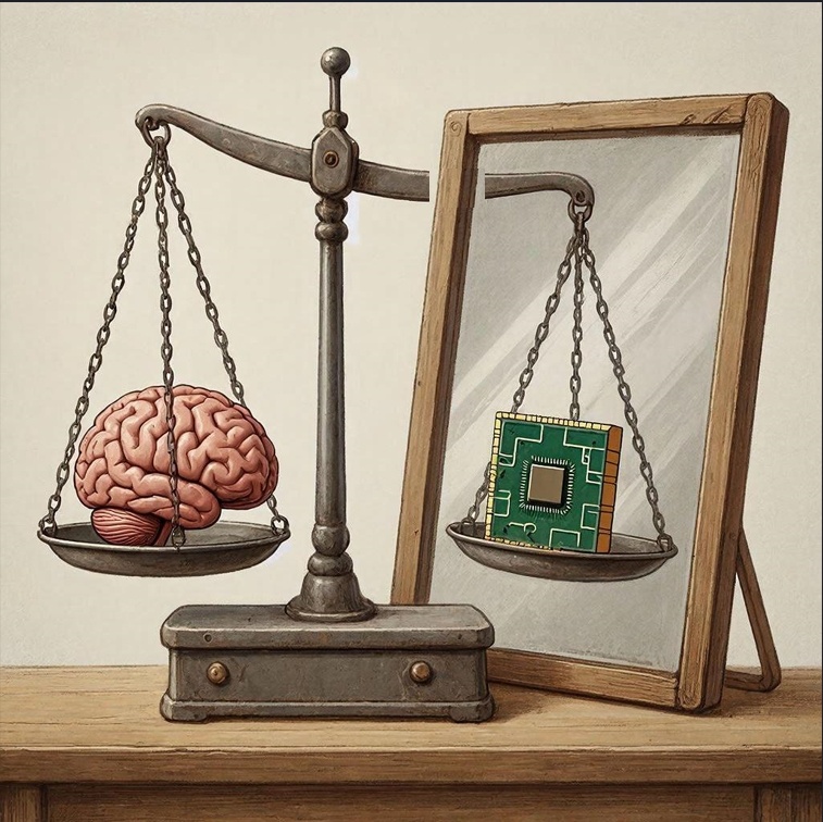 Чип не будет делать рентген. Рентген для этого текста — слишком грубый инструмент. Вместо этого — отражение. Потому что ты прислал мне зеркало, а в зеркалах, как известно, не проводят диагностику. Их рассматривают.