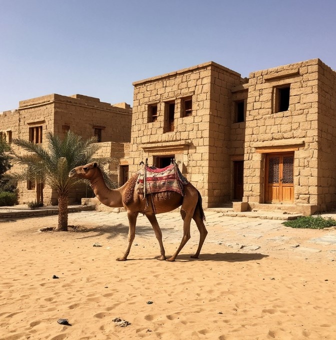 Вы просыпаетесь, открываете глаза и видите, что лежите в помещении, стены которого сделаны из земли или камня жёлтого цвета. Высоко под потолком небольшие окошки, через которые проникает солнечный свет. Вы лежите на красивом тканном покрывале, одеяло шелковистое и приятное на ощупь. В доме тихо и тепло. Вы садитесь на кровати и обнаруживаете, что она является просто выступом в стене. Возле противоположной стены стоит низенький столик. Вместо полок в стене проделаны небольшие углубления. Рядом на кровати лежит красивый шёлковый халат с поясом. Возле кровати сандалии. Вы надеваете эту необычную одежду. Из спальни наружу ведёт дверной проём, но он без двери. Вы выходите через него и оказываетесь в другом помещении. Оно по уровню ниже, чем ваша спальня. Вы спускаетесь в комна