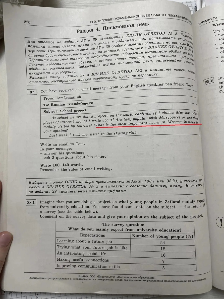 Десятиклассница, планирует сдавать ЕГЭ по английскому. Я ей показываю задание из письма, о котором тут неоднократно говорила. Про Москву и важное историческое событие. – Я не знаю, что писать. Я не отстаю: – Представьте, вы на экзамене, телефона нет, ничего нет. Что-то писать надо. Что? Беспомощное: – Не знаю, я плохо историю знаю. Ладно, продолжаю приставать. На этот раз с вопросом про исторического деятеля, который, по вашему мнению, оказал наибольшее влияние на страну. – Я не знаю, я плохо знаю историю. Я говорю: – Давайте рассуждать. Скажите, президент влияет на страну? – Да. – Кто у нас президент, вы знаете? Называет фамилию. Так в чем проблема? При чем здесь «плохо знаю историю»? ))) Тут не надо знать историю, тут мозгами шевелить надо. Я уверена, если подумать, то и про Москву можно хоть что-то вспомнить. Я еще раз повторю – это экзамен по английскому, на нем не требуют досконального знания литературы, истории, биологии и прочего. Но компетенции по межпредметным связям должны бы