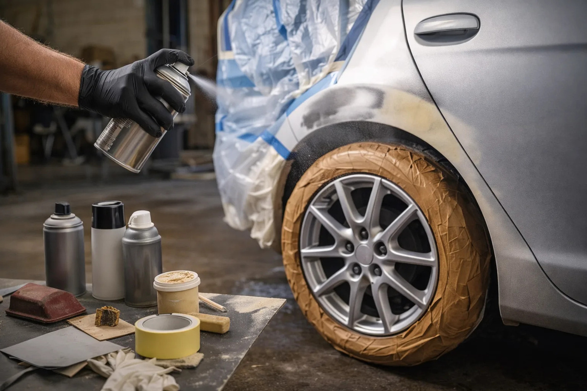 Весна — время привести машину в порядок. После зимних реагентов, сколов и потёртостей кузов и диски выглядят не лучшим образом. Но не спешите ехать в сервис: можно сэкономить и сделать всё самостоятельно. Разберём, как бюджетно обновить авто в гараже — без сложных инструментов и профессиональных навыков. Не нужно замахиваться на весь кузов. Сосредоточьтесь на самых пострадавших местах: Такой локальный ремонт даст заметный эффект и не потребует больших затрат. Наждачная бумага P120–P240 и P400–P600, обезжириватель, грунт по металлу, краска для дисков в аэрозоле (лучше термостойкая или специализированная эмаль), лак, малярный скотч, перчатки. Шлифшкурка P240–P320 и P800–P1000, шпаклёвка по металлу (если есть сколы и раковины), акриловый грунт, автоэмаль в цвет кузова (подбирайте по коду цвета), лак, антисиликон, укрывочная плёнка. Обезжириватель, грунт и сушка — ключевые этапы. Плохая подготовка поверхности испортит результат, даже если краска дорогая и качественная. Вымойте деталь, удал