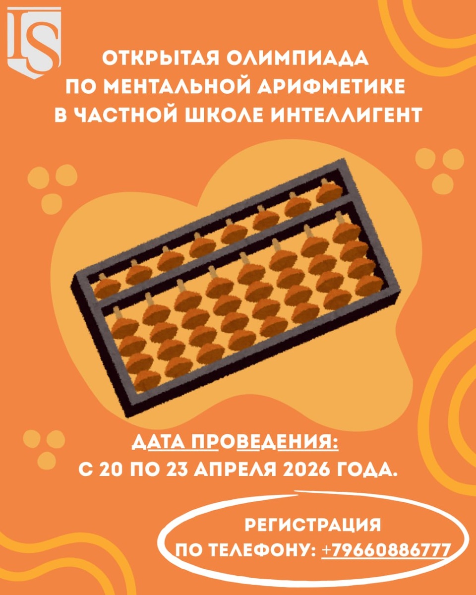 🏆 Приглашаем юных гениев проявить свои таланты и скорость мышления! Наша цель - популяризация ментальной арифметики и мощная мотивация детей к обучению. ❗️Основная информация: 🗓 Дата проведения: с 20 по 23 апреля 2026 года. 📍Место: г. Солнечногорск, ул. Банковская, д. 15 📍Место: г. Солнечногорск, мкр. Рекинцо, ул. Молодежная, д. 1. Организатор: Частная Школа ИНТЕЛЛИГЕНТ 📝 Условия участия: ✔️ К участию приглашаются ученики любых школ и частных инструкторов, обучающиеся по любой методике. ✔️ Участники делятся на возрастные группы и регистрируются на соответствующий уровень заданий. ❗️Важно: каждый участник должен иметь при себе собственный абакус. 📊 Категории и регламент: Соревнования проходят в 3 раунда, каждый из которых длится по 5 минут. Предусмотрено три основные категории: 1️⃣ «Братья»: ментальный счет (Анзан) 1-значных чисел, а также счет на абакусе 2-значных и 3-значных чисел в столбиках. 2️⃣ «Друзья»: аналогичные задания на ментальный счет и работу с абакусом. 3