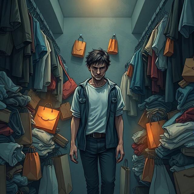 Механизм простой: человеку внутри пусто, тревожно или одиноко. Он заходит в приложение, выбирает, нажимает «оплатить» — и получает микродозу радости. Потом ждет доставку — еще капля предвкушения. Забирает коробку, распаковывает... и всё. Через пять минут магия исчезает. Вещь становится просто хламом, а пустота возвращается.