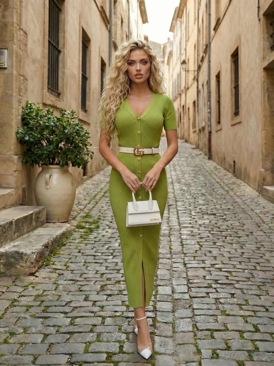 Весной особенно хочется выглядеть свежо — без сложных образов и лишних усилий. И, как ни странно, здесь многое решает не фасон, а именно цвет. При этом важно выбрать «правильный» зелёный — не кричащий и не слишком тёмный, а тот самый, сложный и мягкий оттенок, который не спорит с внешностью, а подчёркивает её. Собрала подборку вещей с WB, которые дают именно этот эффект свежести. Но есть один нюанс, о котором редко говорят. На WB (и не только) цвета часто называют не совсем точно — тот же «лаймовый» в описании может оказаться совсем не ярким, а мягким, приглушённым зелёным. Это обычный маркетинговый ход: яркие названия привлекают внимание, но в реальности оттенок может быть совсем другим. Показываю, на что действительно стоит обратить внимание. Очень красивый мягкий травяной оттенок с оливковым подтоном. Он не яркий, но за счёт чистоты цвета отлично освежает лицо и делает образ более собранным. Облегающий силуэт + вертикаль на пуговицах вытягивают фигуру, а светлые аксессуары добавляю