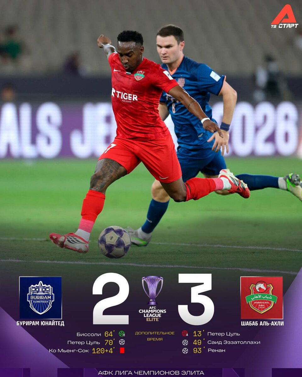 ! Клуб из ОАЭ прошел «Бурирам Юнайтед» лишь в дополнительное время, но победа есть победа. В 1/2 финала «Шабаб Аль-Ахли» встретится с «Матида Зельдия» ⚔️ Подписывайся на ТВ СТАРТ в MAX📲