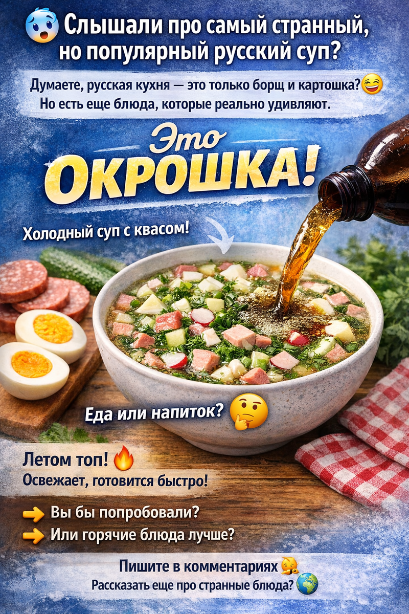 🥶 Слышали про самый странный, но популярный русский суп? Многие думают, что русская кухня — это только борщ и картошка 😅