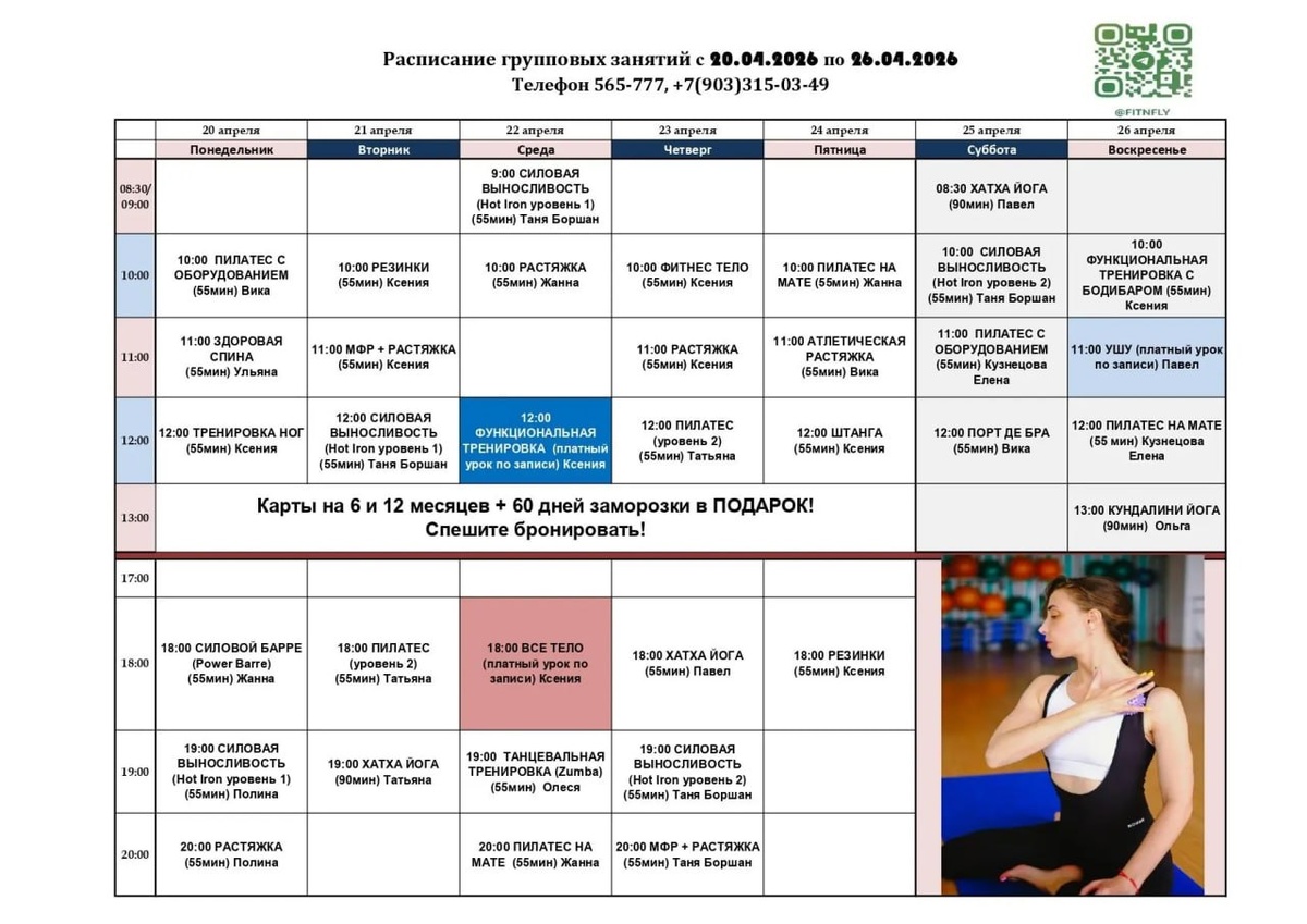 ⏩ Расписание групповых занятий с 20.04.26 по 26.04.26
