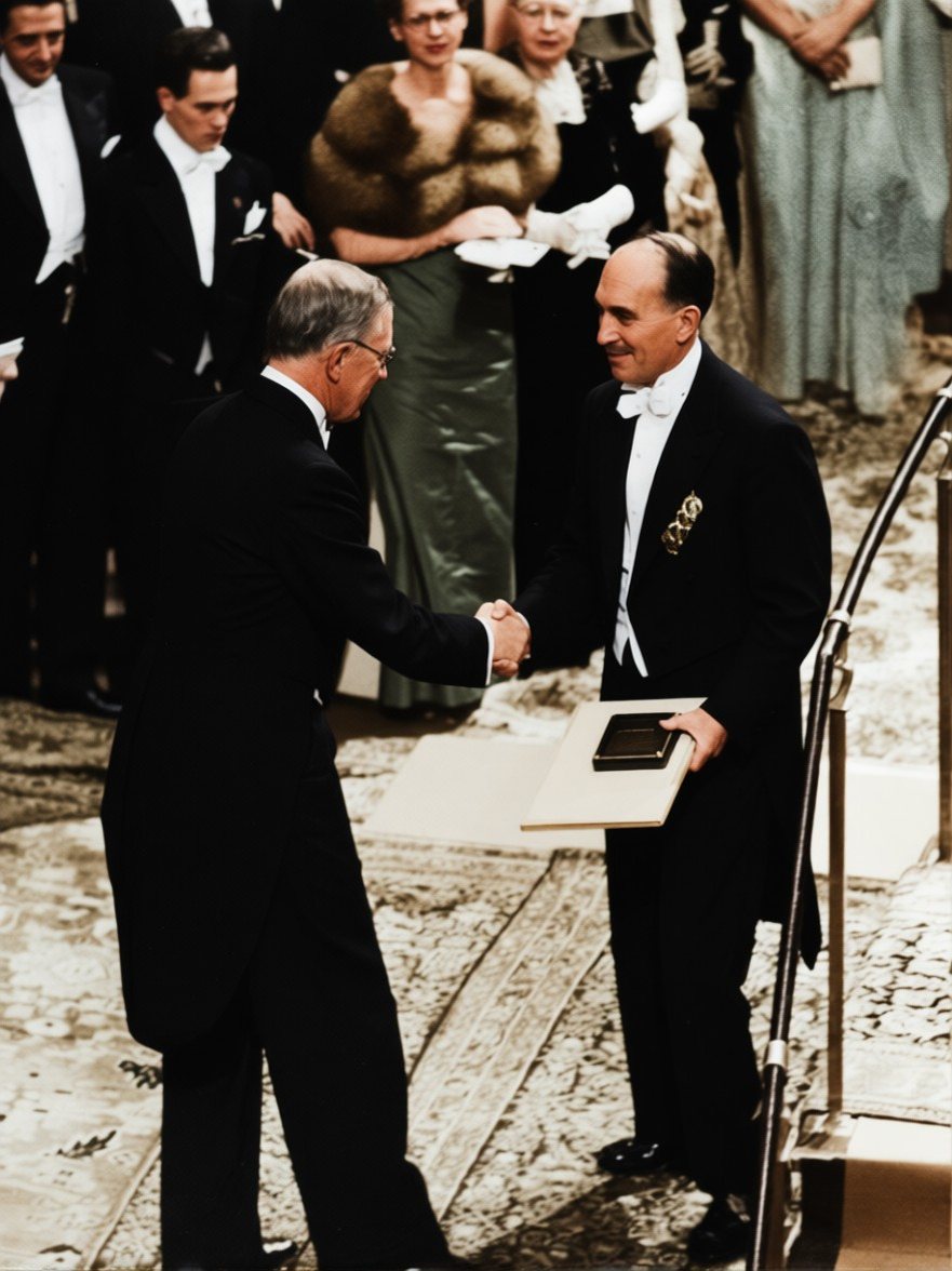 Николай Семёнов получает Нобелевскую премию из рук короля Швеции Густава VI. 10 декабря 1956