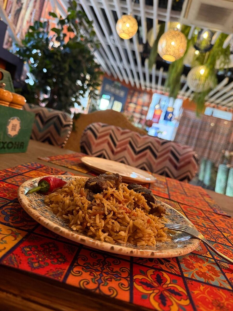 Если честно, в московской более аутентичнее и меню халяль. Интерьер красивый, но: туалет один на весь ресторан и не очень, музыка громкая, как на фуд-корте, да и совсем не в тему. От еды в принципе получили что хотели-сытость, хотя было оочень жирно🤭 П.С. в пакете картины местной художницы #еда #ресторан #чайхона #питер #санктпитербург #невскийпроспект
