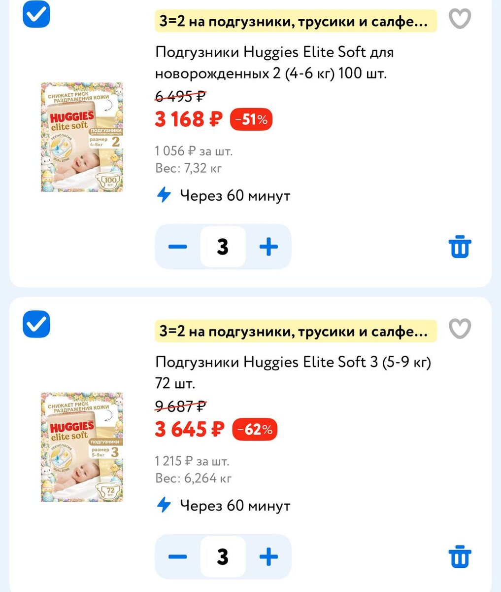 3=2 на подгузники, трусики и салфетки Huggies🥰