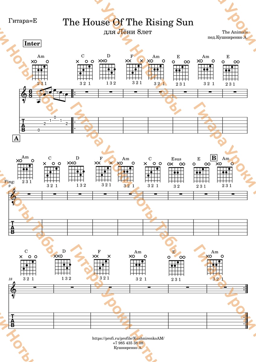 ANIMALS. The House Of The Rising Sun (1964) Аккорды Аппликатура