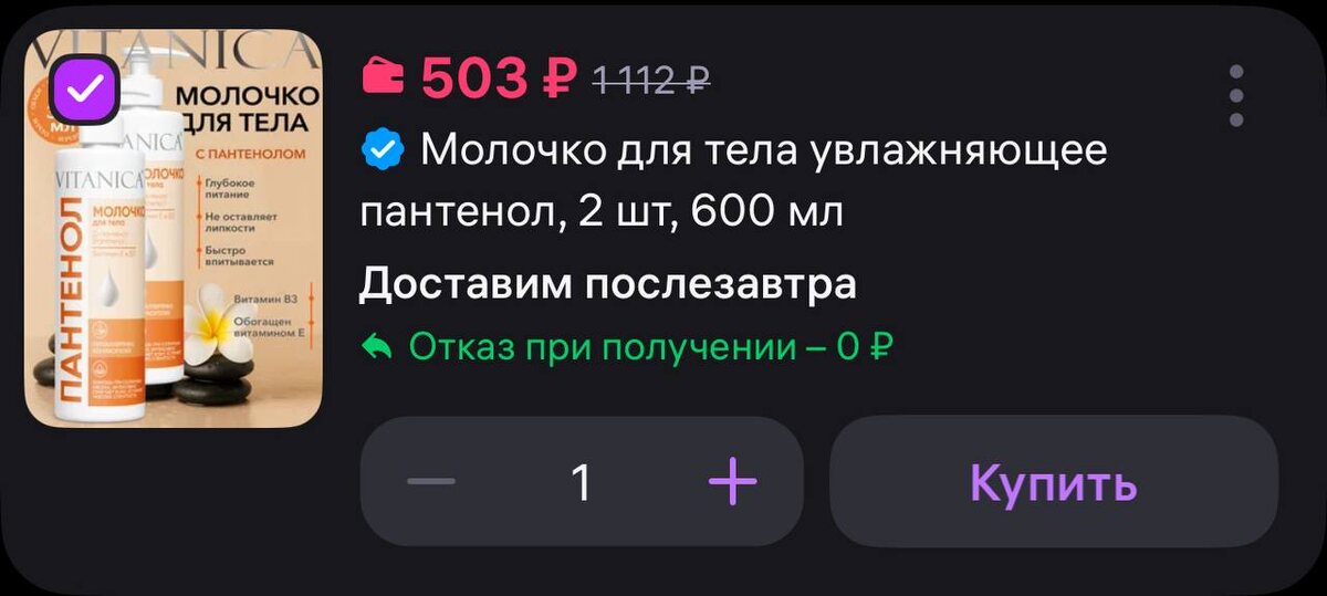 Vitanica Молочко для тела увлажняющее пантенол, 2 шт, 600 мл