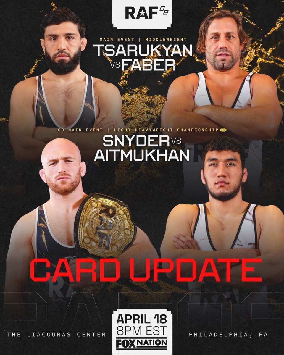 Схватка по правилам вольной борьбы, которая должна была стать главным событием турнира RAF 08 в Филадельфии между бывшими чемпионами UFC американцем Генри Сехудо и грузином Мерабом Двалишвили, отменена. Об этом сообщает пресс-служба организации. Причина отмена заключается в том, что Сехудо получил травму, однако о её характере не сообщается. Новым главным событием ивента станет противостояние между вторым номером рейтинга UFC в лёгком весе, представляющим Армению и Россию, Арманом Царукяном и 46-летним бывшим претендентом на титул UFC в легчайшем весе американцем Юрайем Фейбером. Арману Царукяну 29 лет. В профессиональном рекорде в ММА российско-армянского бойца 23 победы, из которых 15 были одержаны досрочно, и три поражения. В качестве профессионала Ахалкалакец дебютировал в смешанных единоборствах в сентябре 2015 года, а с UFC Арман начал сотрудничать с апреля 2019 года. Он является мастером спорта по вольной борьбе и ММА. Фейбер выступал на профессиональном уровне в ММА с 2003 по 2
