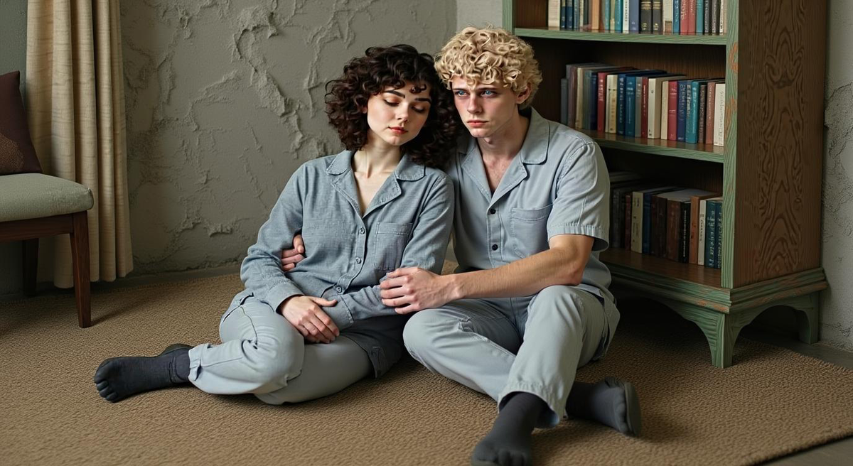 Надя послушно последовала за ним. Они уселись вдвоём на коврике возле книжного шкафа и некоторое время просто молчали, обнимаясь.