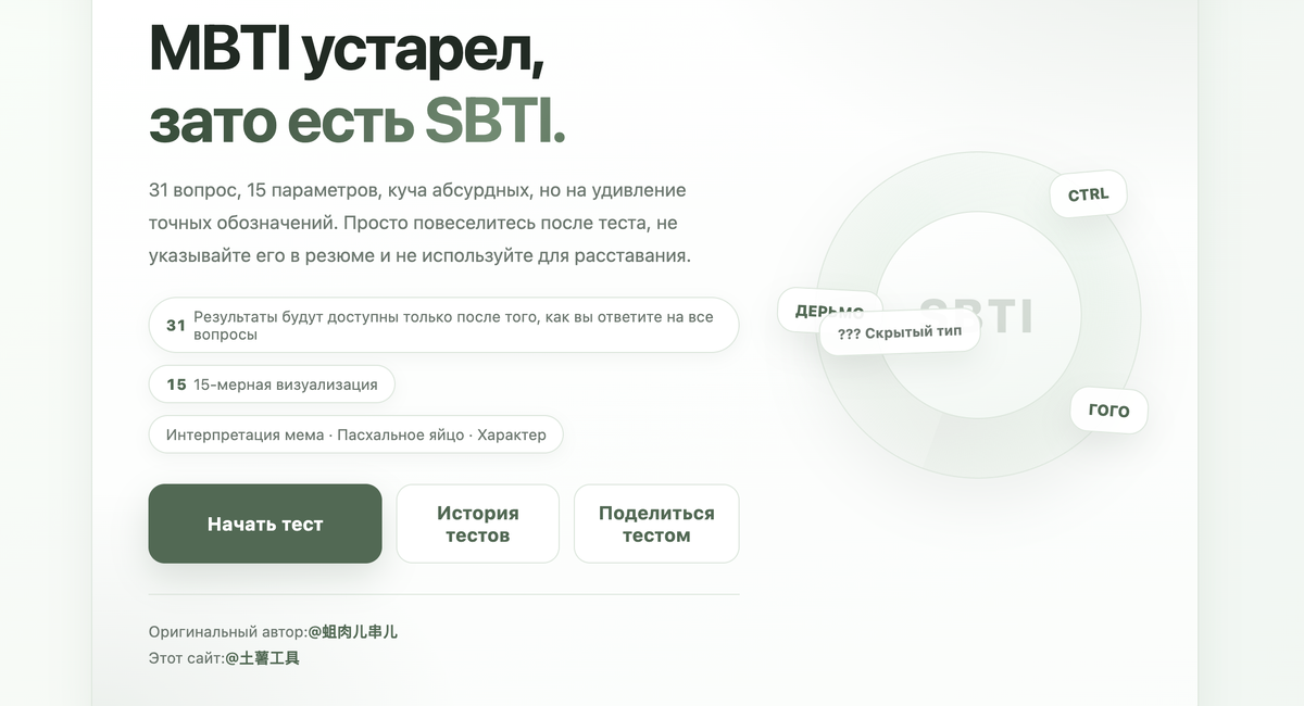 Буквально год назад мы с вами определяли, какие же в нас преобладают буквы. Корейцы, между прочим, по ним выбирают себе друзей и партнеров) Но теперь вирусится китайский тест SBTI. Ссылку прилагаю. Он бесплатный, можете пройти тот же, что и я, либо найти другие сайты. Его смысл в том, чтобы вы с юмором отнеслись к себе, побольше узнали о своем типе личности простыми словами, при этом не утопая в психологических терминах и не вешая ярлыки.