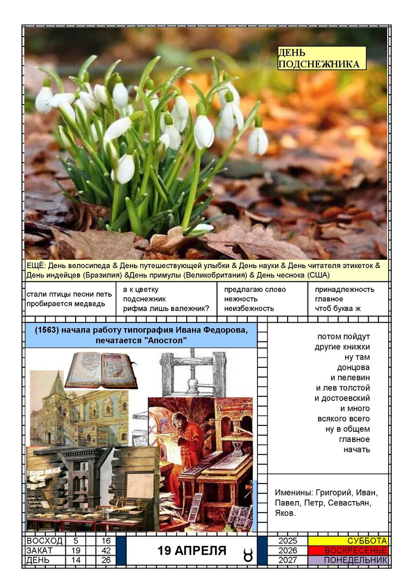 КАЛЕНДАРЬ 19 АПРЕЛЯ