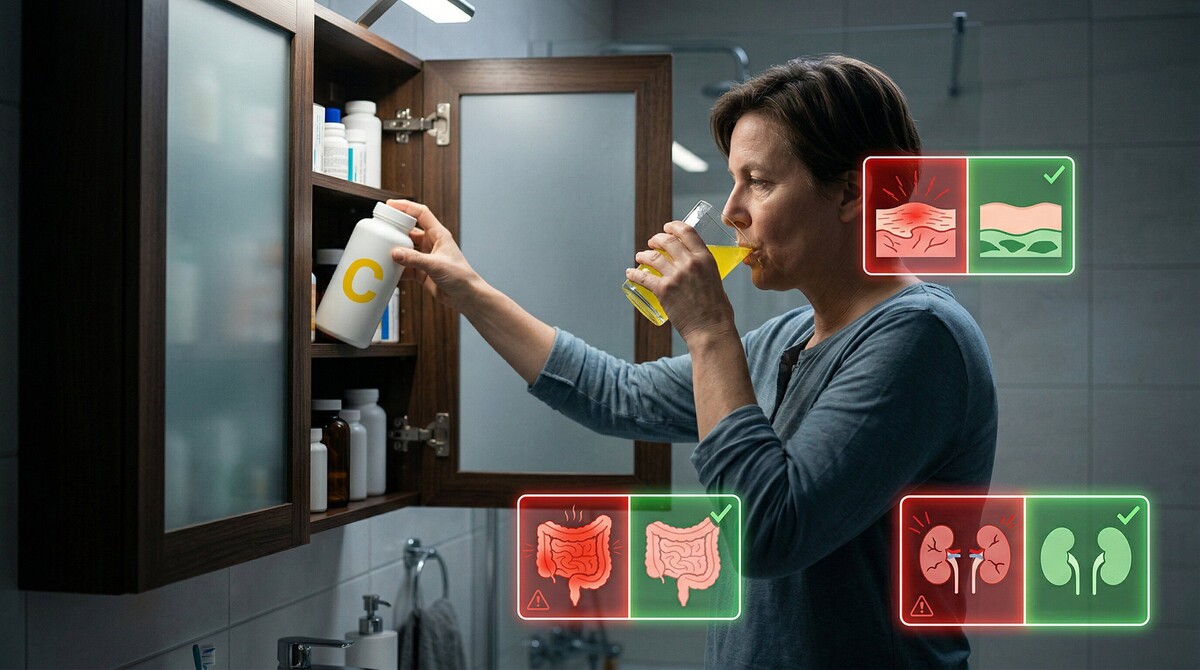 Особенно уязвимы мужчины. Масштабное шведское исследование (COSM), охватившее почти 50 000 человек в течение 11 лет, показало, что регулярное употребление добавок витамина С в дозе около 1000 мг удваивает риск развития мочекаменной болезни. Что характерно, у тех, кто принимал обычные мультивитамины с низким содержанием аскорбинки, риск не повышался. Мы имеем дело с классическим случаем, когда доза превращает лекарство в инструмент для создания камней внутри собственного тела.